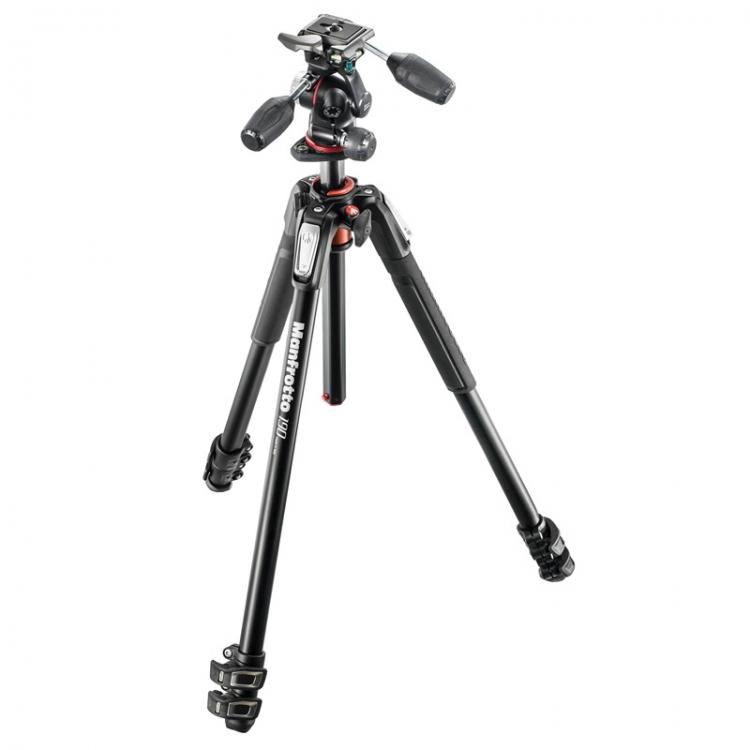 سه پایه آلومینیومی از کمپانی مانفرتو مدل Manfrotto MK190XPRO3-3W قابلیت چرخش را در سه جهت دارد و به شکل Pan/Tilt می باشد. شرکت مانفرتو در این سه پایه خود میکسی از پایه های MK190XPRO3 را با هد MHXPRO-3W ترکیب کرده تا امکان گردش را در سه جهت به صورت عمودی و افقی فراهم شود. این سه پایه تا حداکثر 6 کیلوگرم را می تواند حمل کند. همچنین، قابلیت گسترش طول را تا ۱۷۳ سانتی متر دارد و امکان جمع شدن آن تا ۷۲ سانتی متر می باشد که در نهایت حمل آن را آسان تر می کتد. با استفاده از یک سیستم مخصوص برای قفل سریع، شما می توانید تنها با استفاده از یک دست، پایه های این محصول را تا بیشترین حد ممکن باز کنید. پس از راه اندازی، شما می توانید از ستون مرکزی سریع سه پایه ، در حالت استاندارد عمودی استفاده کنید و یا آن را در حالت افقی قرار بدهید، این ویژگی به همراه قابلیت ستون ۹۰درجه مانفرتو ، امکان خوبی در پایین آوردن ارتفاع دوربین تا ۹سانتی متری زمین را به وجود می آورد. شما همینطور می توانید از یک بازوی قابل گسترش یا یک براکت به منظور جلوگیری از نور یا انعکاس از طریق پین Easy link که در بخش اسپایدر سه پایه تعبیه شده است استفاده نمایید. هد سه پایه مانفرتو مدل MHXPRO-3W دارای دسته هایی قابل جمع شدن است که به اندازه نیاز شما قابل تغییر هستند. سه پایه Manfrotto MK190XPRO3-3W مجهز به دو دستگیره اصطکاک است که یکی از آن ها برای اصطکاک جلو و عقب و دیگری به منظور حرکت جانب به جانب استفاده می شود که به شما امکان این را می دهد تا حرکات خود را با توجه به وزن تجهیزات خود تنظیم کنید. با بهره بردن از سه حباب سطح بندی شده نیز، شما اطمینان خواهید داشت که عملکردتان در تمام محورها تراز باشد.