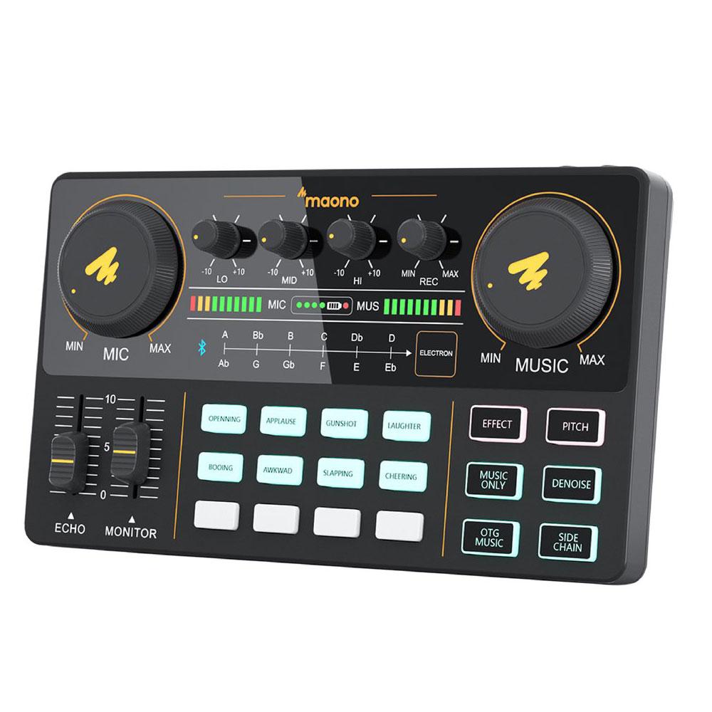 پد MAONOCASTER Lite AU-AM200 از یك سری دكمه كاربردی و دو چرخانك برای كنترل میكروفون و موسیقی برخوردار است. 3 چرخانك كوچك برای تنظیمات فركانسِ صدا و یك چرخانك برای كنترل ضبط مشاهده میشود. حجم صدای مانیتور و اندازه اكو Echo را تنظیم كنید. افكتهای مختلف به استریم اضافه كنید. به علاوه چندین صدای پیشفرض شما از 4 دكمه برای ضبط صدای دلخواه خودتان استفاده كنید.