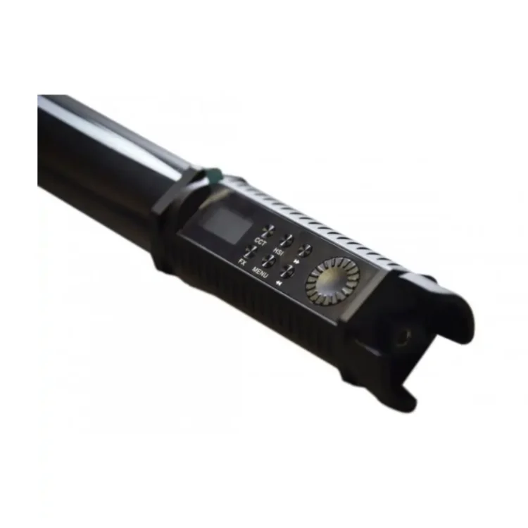 پیش از اقدام به خرید نور باتومی آرجیبی مکسلایت Maxlight HDL-100AIPRC RGB LED Tube Light لازم است با ویژگیهای ظاهری آن آشنا شوید. این نور باتومی دارای طول 100 سانتیمتر بوده که به واسطه طراحی باریک میتواند بر روی انواع استند و دوربین نصب شود. همانطور که از عنوان این محصول مشخص است نور Maxlight HDL-100AIPRC دارای قابلیت نورردهی RGB میباشد. از این رو تنوع رنگ و نورپردازی بالایی دارد. بر روی دسته این محصول یک نمایشگر LCD کوچک به همراه دکمههای تنظیم دما و شدت نور تعبیه شده است. علاوه بر آن کلید بزرگ روشن و خاموش کردن دستگاه نیز بر روی دسته قرار دارد. در هنگام خرید نور باتومی Maxlight HDL-100AIPRC RGB LED Tube Light مطمئن شوید که در جعبه آن کیف حمل، ریموت کنترل و گیره آهنربایی وجود دارد.