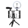 کیج موبایل کیت ولاگری تولید محتوا یک ابزار حرفهای است که برای استریم و تولید محتوای ویدیویی با استفاده از گوشی موبایل طراحی شده است. این کیج بهطور خاص برای کاهش لرزشهای ویدیویی ساخته شده و عملکردی مشابه لرزشگیر را دارد.
