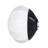 سافت باکس Nanlite LT-65 با ابعاد 65 سانتیمتر و عمق 45 سانتیمتر طراحی شده تا نور را به طور یکنواخت در سطح وسیع پخش کند. جنس بدنه آن از پارچه مقاوم در برابر حرارت است و لایه داخلی نقرهای به توزیع نور ملایم کمک میکند. این سافت باکس با مانت Bowens سازگار است و به راحتی به انواع ویدیو لایت مانند Forza 300 II و FS-300B متصل میشود.