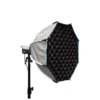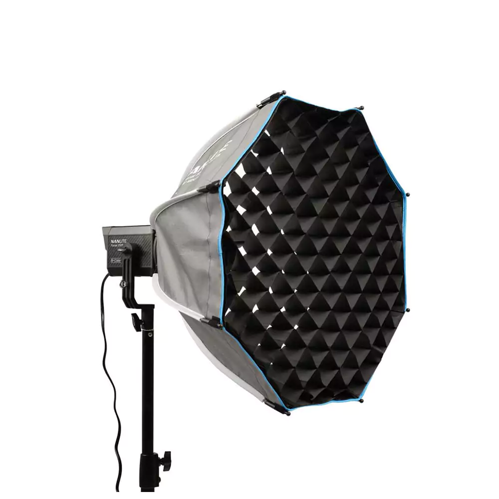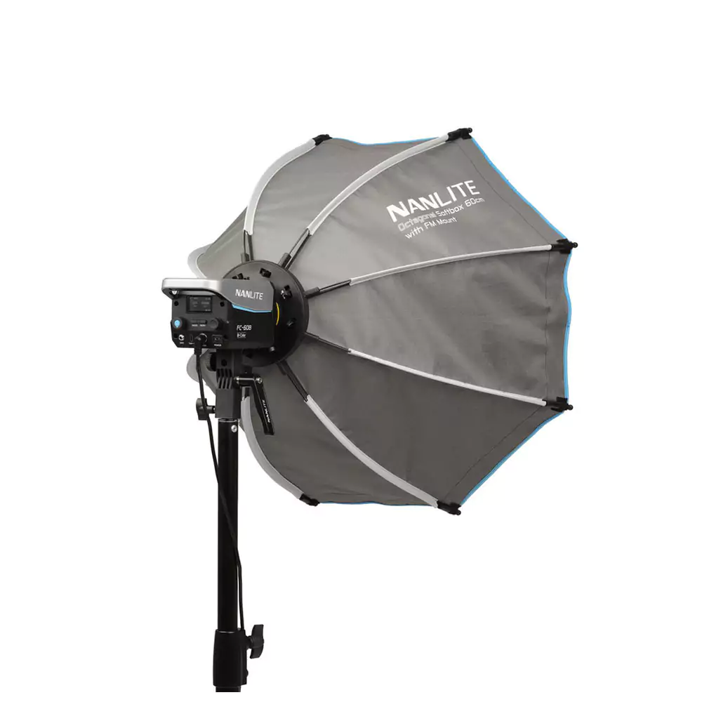 سافتباکس Nanlite مدل SB-FMM-O-60 با قطر 60 سانتیمتر و طراحی 8 ضلعی نور بسیار نرم و ملایمی تولید میکند که مناسب برای پروژههای عکاسی و فیلمبرداری مختلف است. این محصول مجهز به مانت FM بوده و به راحتی میتوان آن را روی نورهای ثابت نانلایت مانند Forza 60، Forza 150 و سایر مدلهای مشابه نصب کرد. بستهبندی آن شامل یک دیفیوزر استاندارد، یک دیفیوزر سبکتر، یک گرید (زنبوری) و کیف حمل برای راحتی جابجایی است. همچنین دفترچه راهنما برای استفاده صحیح و بهینه از محصول در دسترس است.