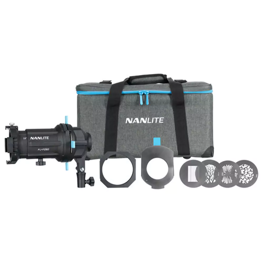 همراه این محصول، یک کیف حمل مقاوم ارائه میشود که تمام اجزای آن از جمله بدنه، لنز، گوبوها، قابها و لوازم جانبی را بهصورت ایمن نگهداری و جابهجا میکند.