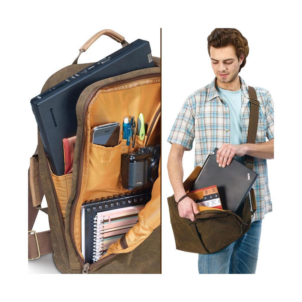 • ظرفیت حمل یک دوربین متوسط و لوازم جانبی، لپ تاپ 15 اینچی