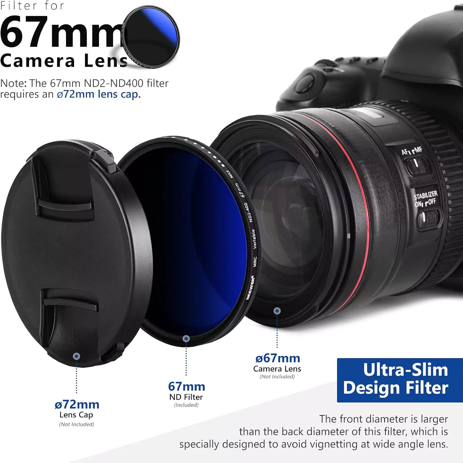 - نیاز به درپوش 72 میلیمتری برای فیلتر 67 میلیمتری