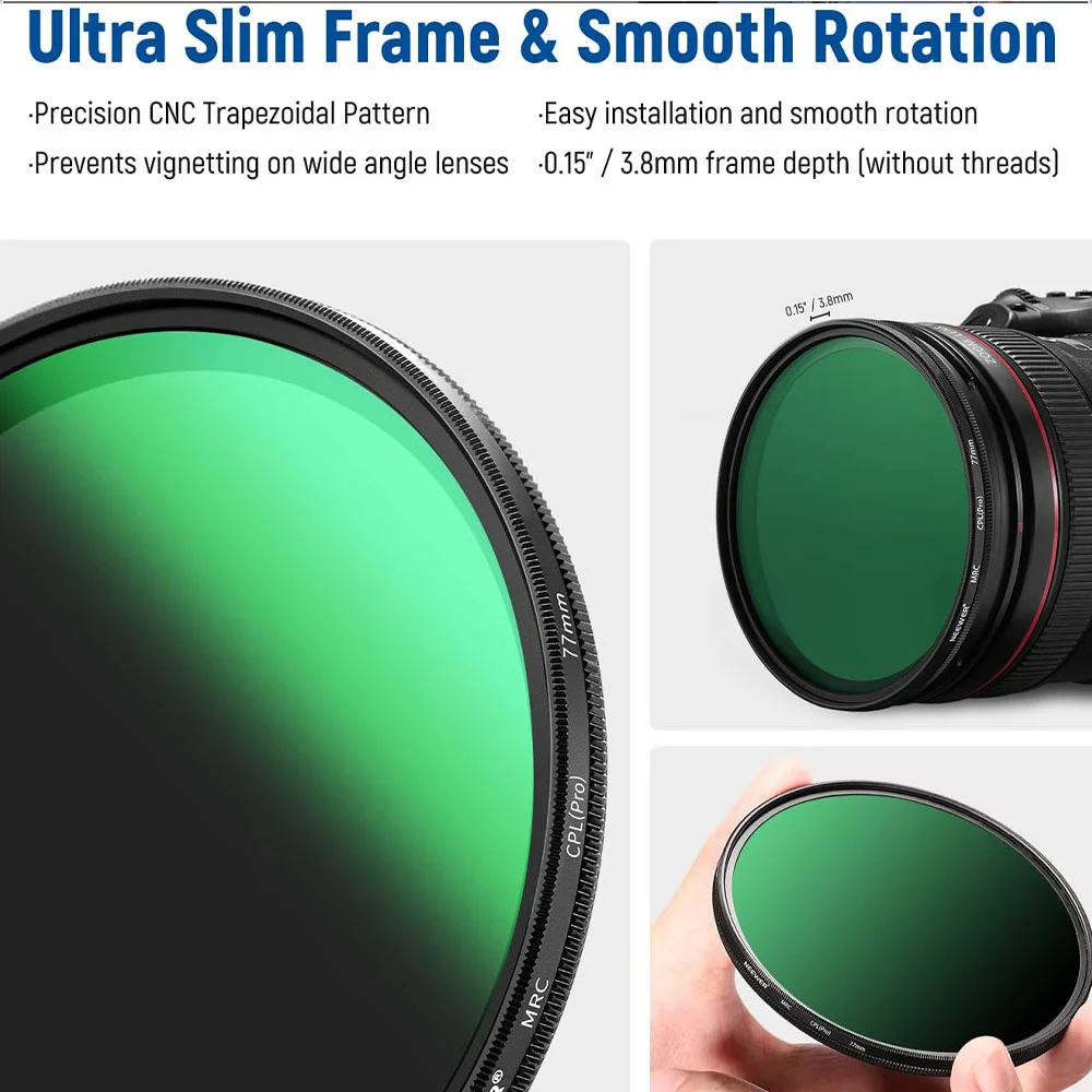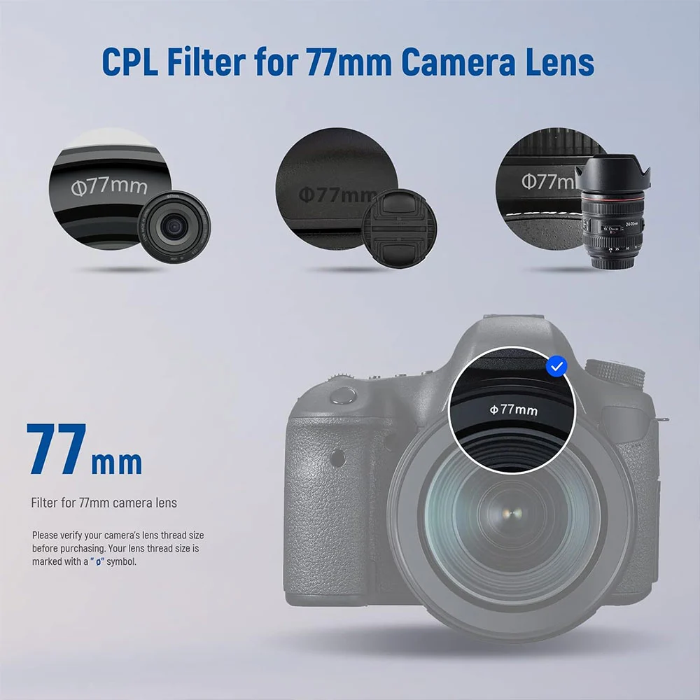 NEEWER 77 mm Polarising Filter (Polarising Filter), CPL Filter with 30 Layer Multi-Layer Polarising Film, Reduce Glare, Improve Contrast, Ultra Thin, Reflection Reduced, HD Optical Glass