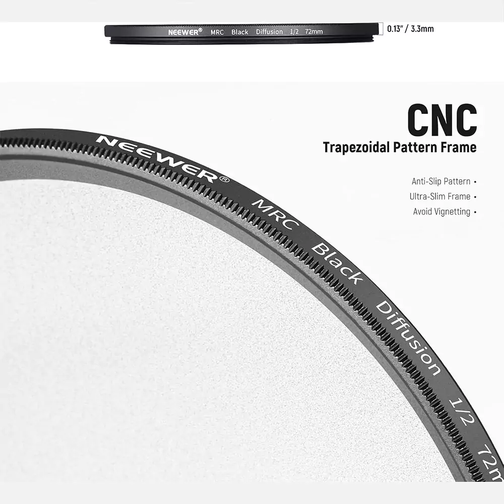 نقد و بررسی مشخصات فنی فیلتر لنز 72 میلیمتر نیور NEEWER Black Diffusion 1/2 Cinematic Effect 72mm