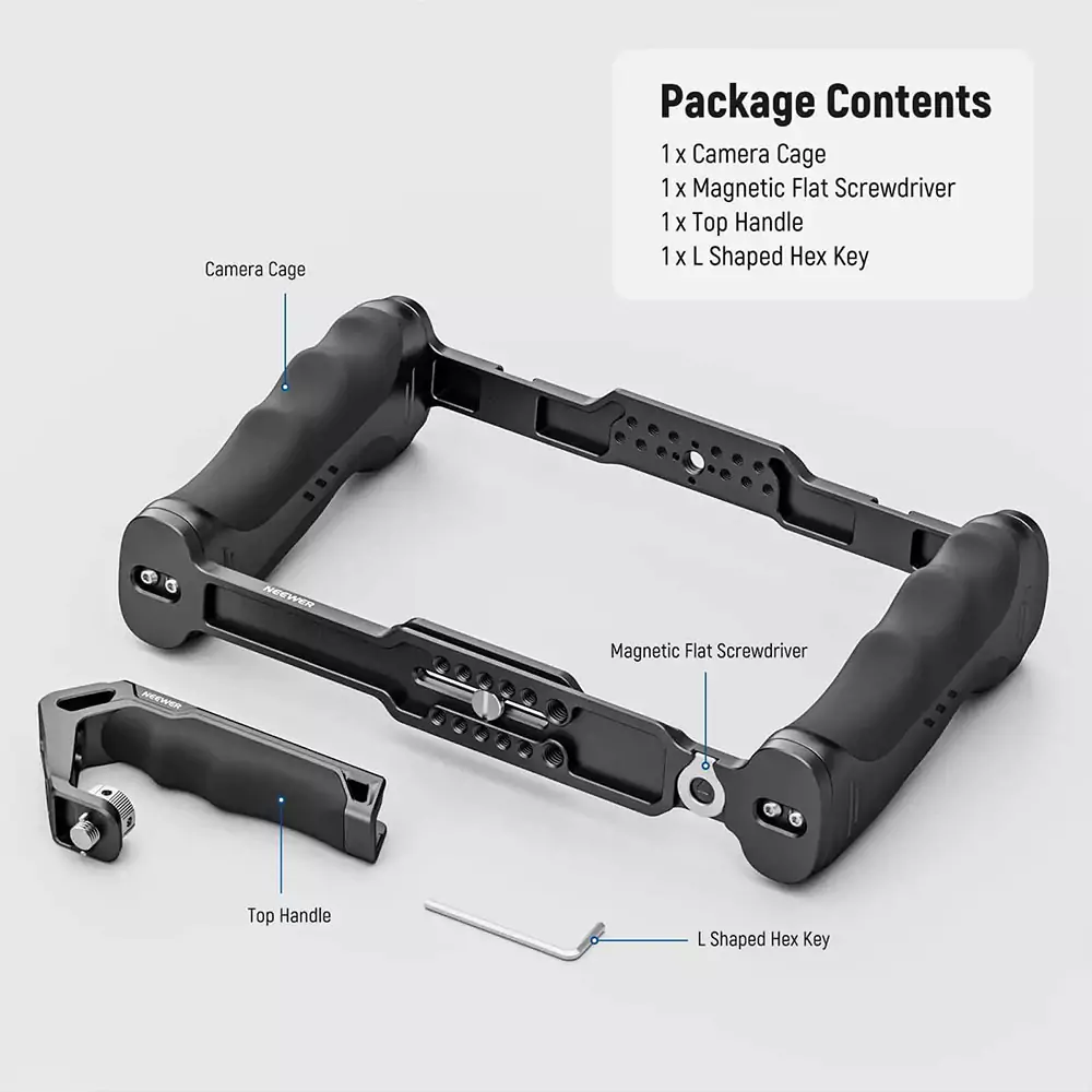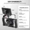دسترسی آسان به دکمهها و اتصالات دوربین: طراحی این کیج بهگونهای است که هیچگونه محدودیتی در دسترسی به دکمهها و اتصالات دوربین ایجاد نمیکند. این امر موجب میشود که شما بتوانید بهراحتی از تمامی قابلیتهای دوربین استفاده کنید.