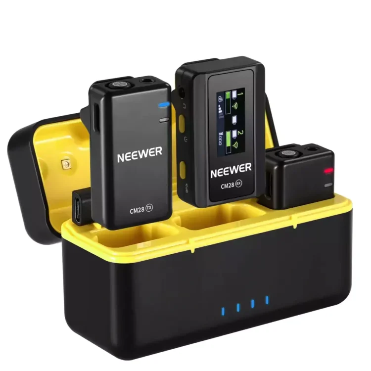 %3.2در دنیای امروز که تولید محتوا دیگر محدود به استودیوهای حرفهای نیست و بسیاری از افراد با گوشی هوشمند یا دوربین DSLR خود به ضبط ویدیو، پادکست یا اجرای لایو میپردازند، کیفیت صدا یکی از مهمترین عوامل موفقیت است. میکروفون نیور NEEWER CM28 بهعنوان یک سیستم یقهای وایرلس، پاسخی دقیق و حرفهای به نیاز کسانی است که میخواهند در هر شرایطی صدایی شفاف، بدون نویز و بدون مزاحمت سیمهای اضافی داشته باشند. این میکروفون نهتنها برای کاربران حرفهای، بلکه برای هر کسی که تولید محتوای باکیفیت را جدی میگیرد، یک گزینه فوقالعاده محسوب میشود.