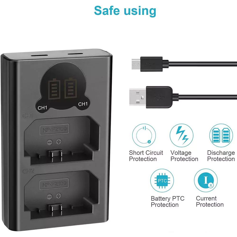 - قابلیت شارژ همزمان دو باتری NP-FZ100 (یا شارژ تکی)