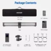 اسلایدر نیور NEEWER ER1-120 یک ابزار حرفهای برای عکاسان و فیلمبرداران است که امکان حرکت دقیق و نرم دوربین برای فیلمبرداری تایملپس و پانوراما را فراهم میکند. این اسلایدر با ساختار فیبر کربن و آلیاژ آلومینیوم سبک و مقاوم است و طول 120 سانتیمتری آن برای پروژههای حرفهای مناسب است.
