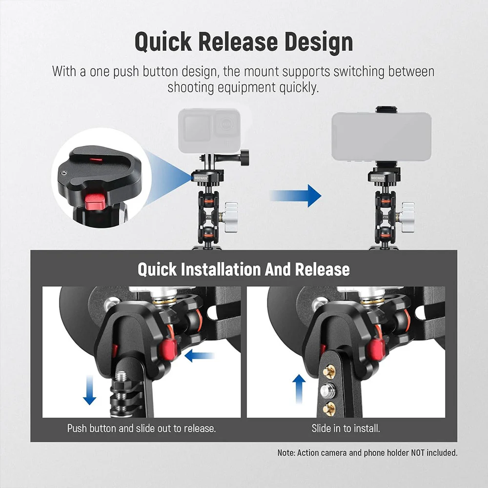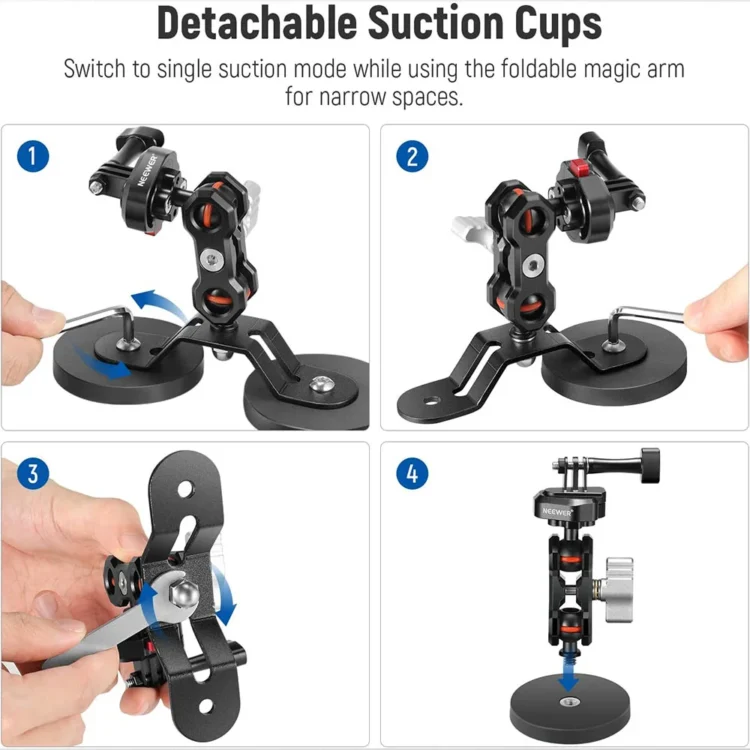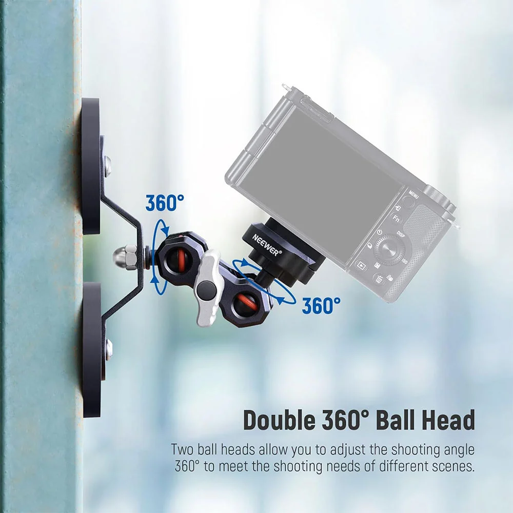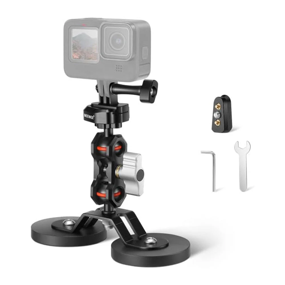 هولدر با مانت اکشن کمرا نیور Neewer، یک راهحل مطمئن برای نصب دوربینهای اکشن روی سطوح فلزی است. با دو مکنده مغناطیسی قدرتمند و بازوی جادویی 360 درجه، تجربهای منحصر به فرد از عکاسی و فیلمبرداری ارائه میدهد. طراحی تاشو و قابل حمل این لوازم عکاسی و فیلمبرداری نیز به شما این امکان را میدهد که به راحتی از آن در شرایط مختلف استفاده کنید.