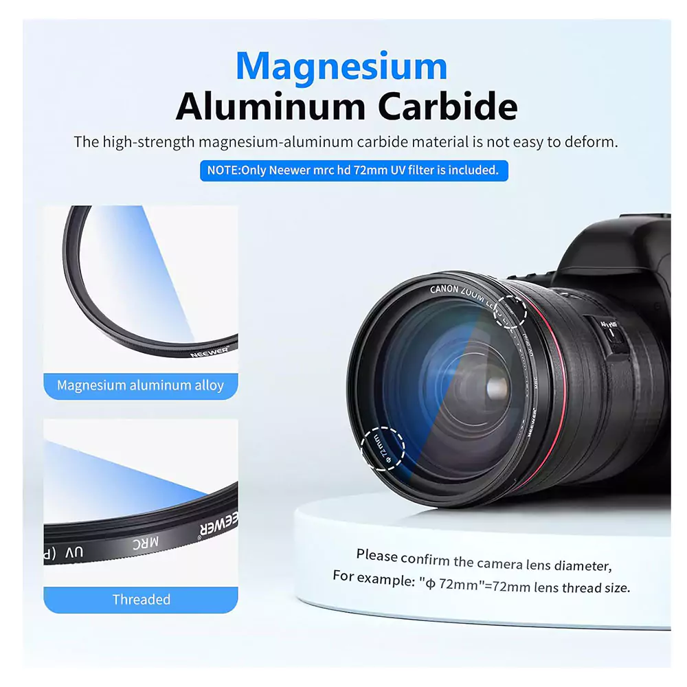 ویژگی های فیلتر نیور Neewer UV 72mm