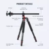 محدوده ارتفاع تک پایه این سه پایه از 55 تا 155 سانتیمتر قابل تنظیم است، که این ویژگی به انعطافپذیری و تطبیقپذیری بیشتر سه پایه در موقعیتهای مختلف کمک میکند. قطر هر پایه 28 میلیمتر است که به استحکام و پایداری سه پایه افزوده و از تکانهای اضافی جلوگیری میکند.