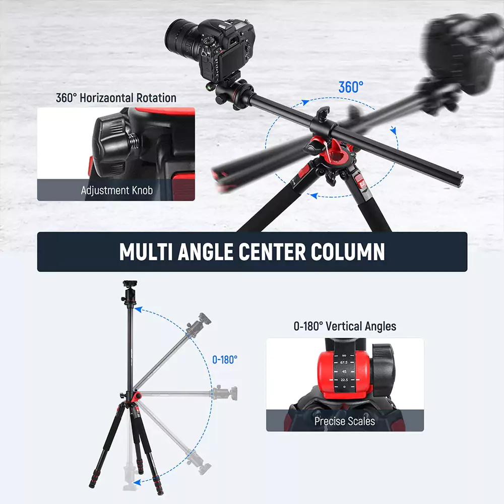 حداقل ارتفاع این سه پایه 67 سانتیمتر است که امکان استفاده در فضاهای محدود و ثبت تصاویر با زاویههای پایین را فراهم میآورد. همچنین، وقتی سه پایه جمع میشود، ارتفاع آن به 67 سانتیمتر میرسد، که حمل و نقل آن را آسان میکند.