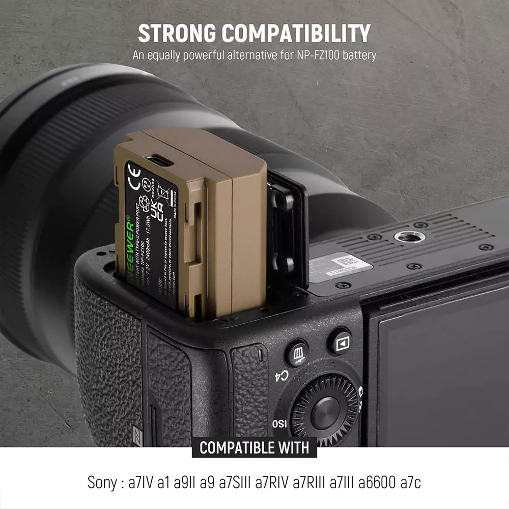 باتری نیور NEEWER NP-FZ100، یک منبع تغذیه قوی و مطمئن برای دوربینهای سونی است که بهطور خاص برای نیازهای عکاسان و فیلمبرداران طراحی شده است. این باتری با ظرفیت 2400 میلیآمپر ساعت، عملکردی پایدار و طولانیمدت را برای عکاسی و فیلمبرداری فراهم میکند و به شما این امکان را میدهد که بدون نگرانی از تمام شدن باتری، به کار خود ادامه دهید.