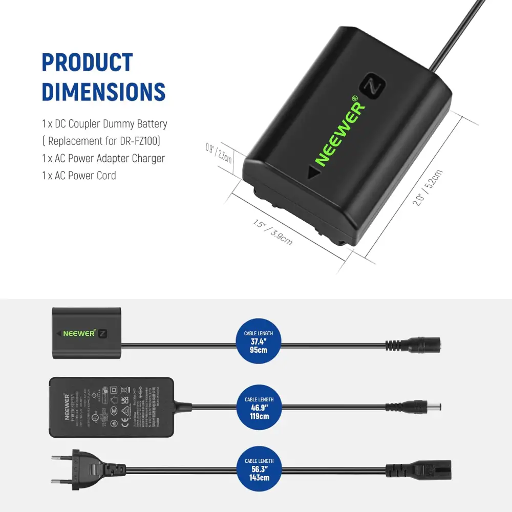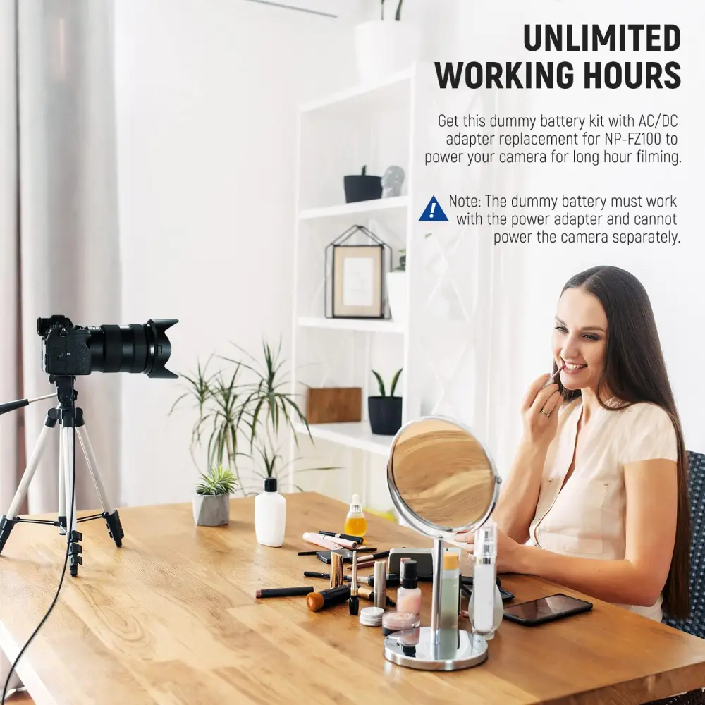 کاربرد: این آداپتور برق NP-FZ100 امکان تأمین برق مداوم دوربین از طریق برق شهری را فراهم میکند و مناسب ضبطهای طولانی در استودیو، انتقال و تماشای عکس و ویدئو یا استفاده هنگام اتصال دوربین به تلویزیون یا دستگاههای ضبط است.