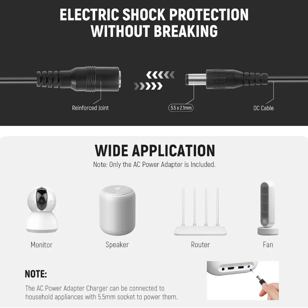 مشخصات برق: ولتاژ ورودی: 100 تا 240 ولت / 50 تا 60 هرتز توان خروجی: DC 8 ولت / 3 آمپر (24 وات)