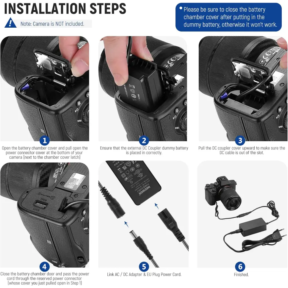 محتویات بستهبندی: یک عدد باتری دامی NP-FZ100 یک عدد آداپتور AC/DC یک عدد کابل برق