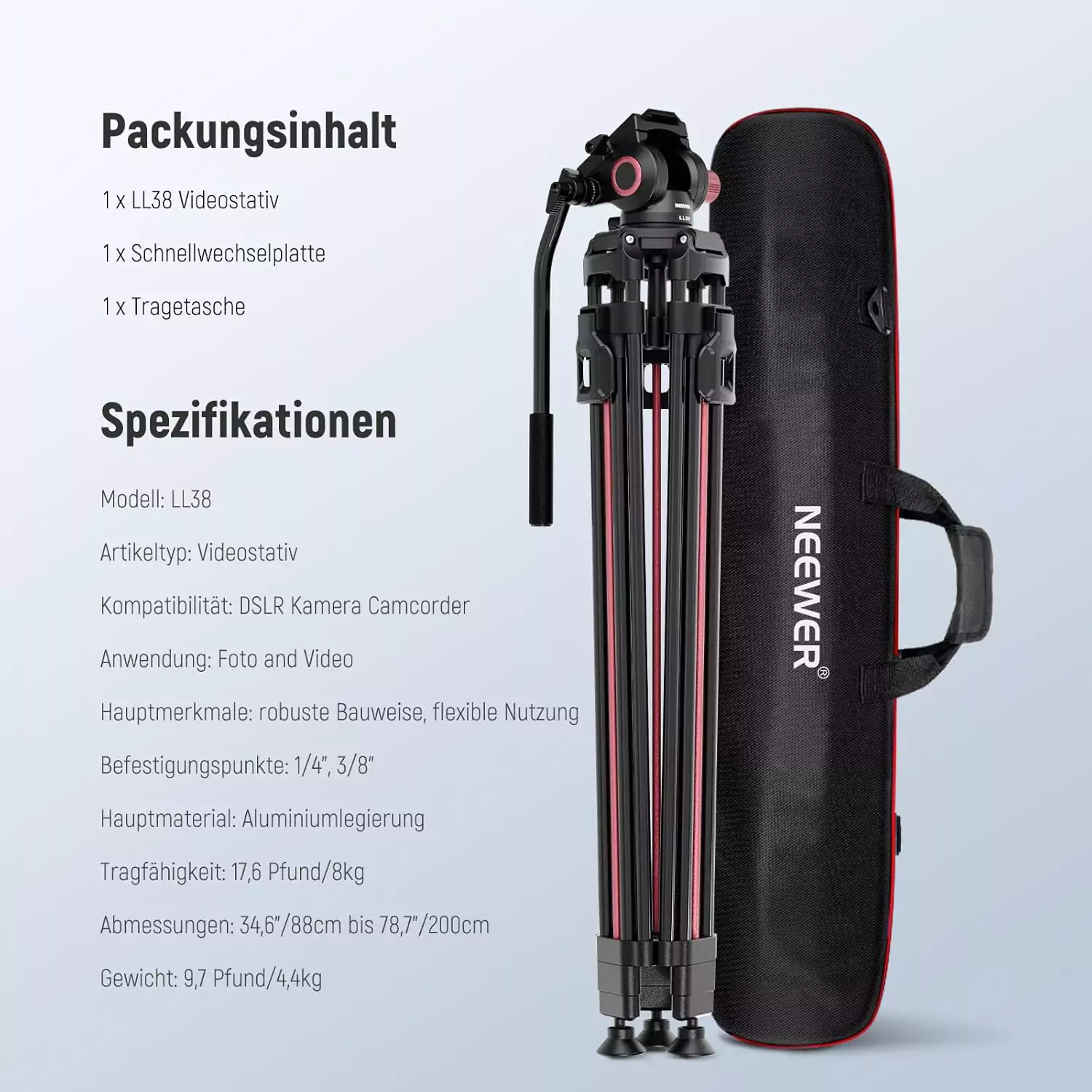 سه پایه فیلمبرداری نیور NEEWER LL38 2M Video Camera Tripod