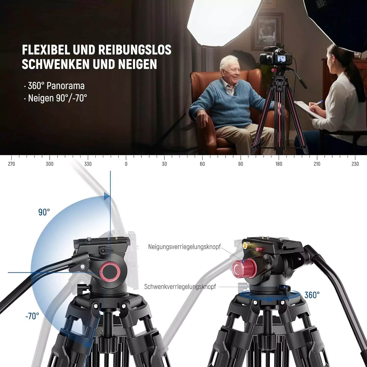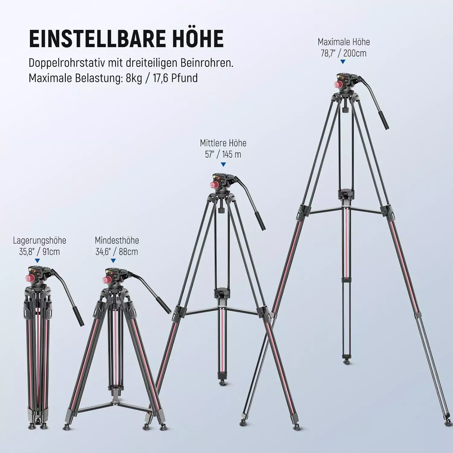 NEEWER ONE-STEP 200CM HEAVY DUTY VIDEO TRIPOD WITH FLUID DRAG HEAD