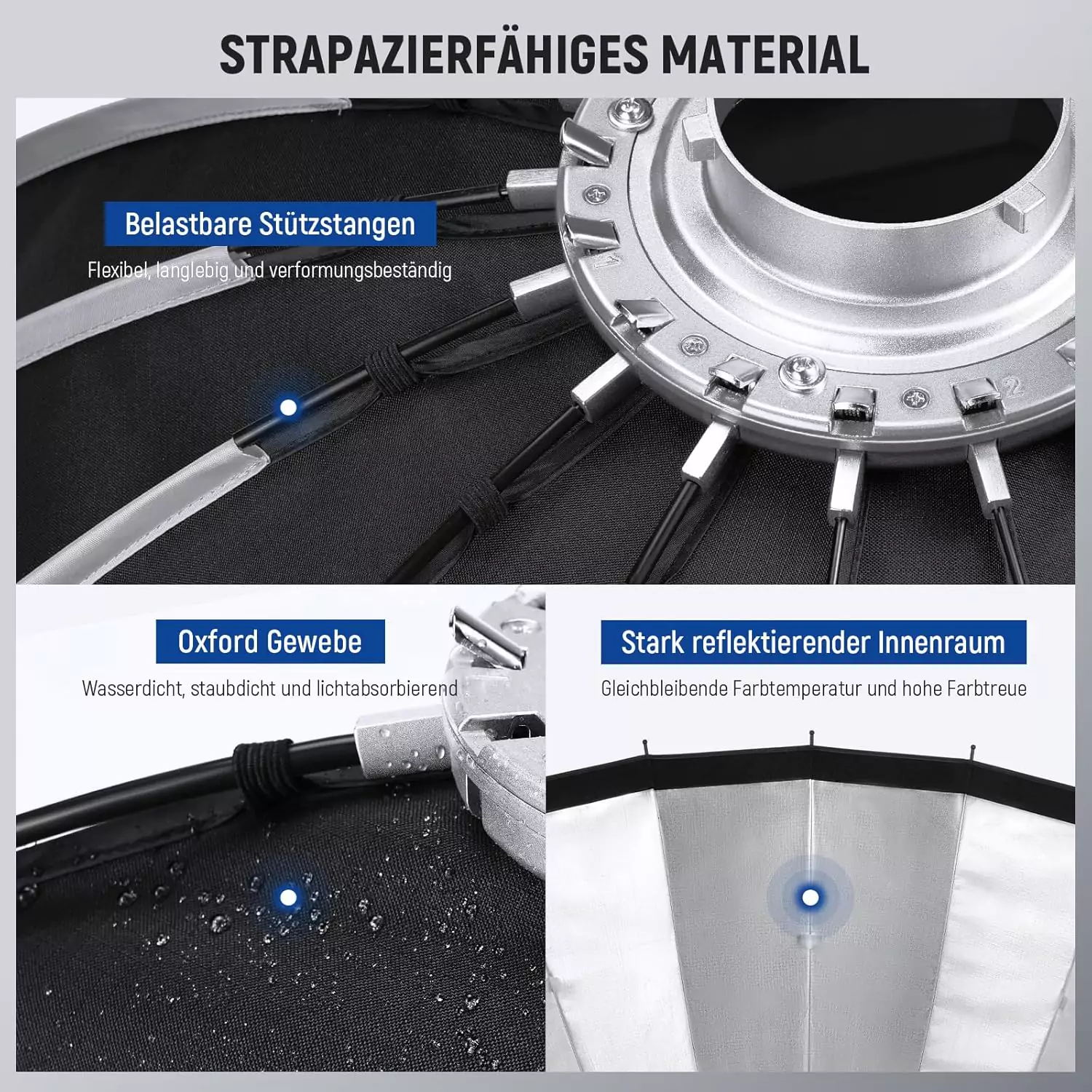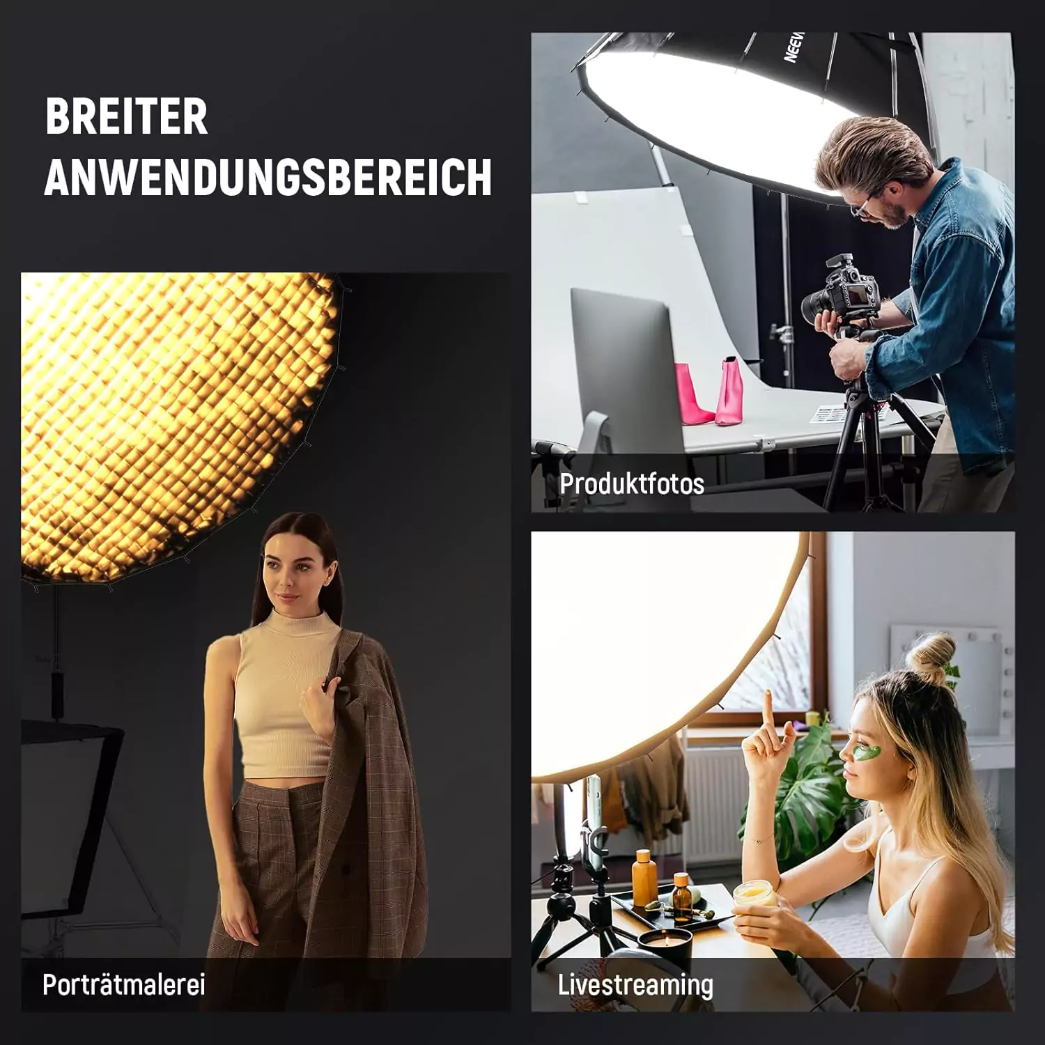 • سازگار با نورهای ثابت و فلاش‌های استودیویی برندهای NEEWER، Godox، Aputure، SmallRig و…