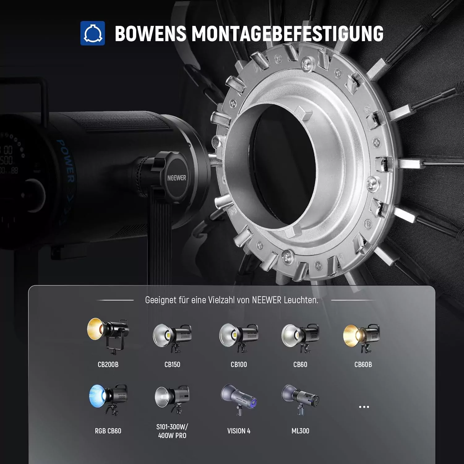 • توصیه‌شده برای استفاده با نورهای NEEWER سری CB و FS