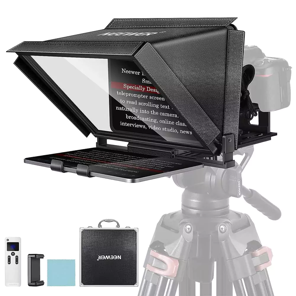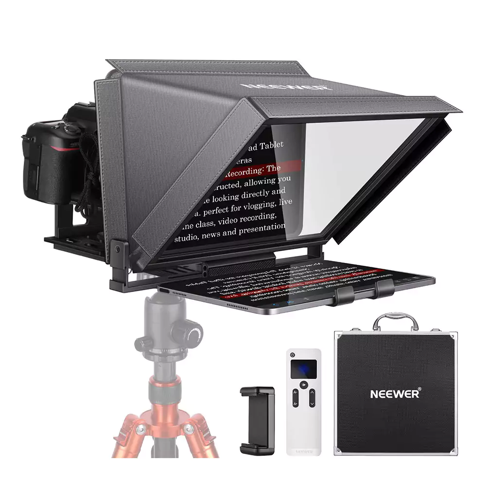 تله پرامپتر نیور NEEWER X12 یکی از تله پرامپترهای حرفهای موجود در بازار است که طراحی بسیار کاربرپسند و ویژگیهای منحصر به فردی دارد. این دستگاه با استفاده از یک صفحه نمایش بدون مانع و شیشه پرتو، تجربهای حرفهای و کاربرپسند را در اختیار کاربران قرار میدهد.
