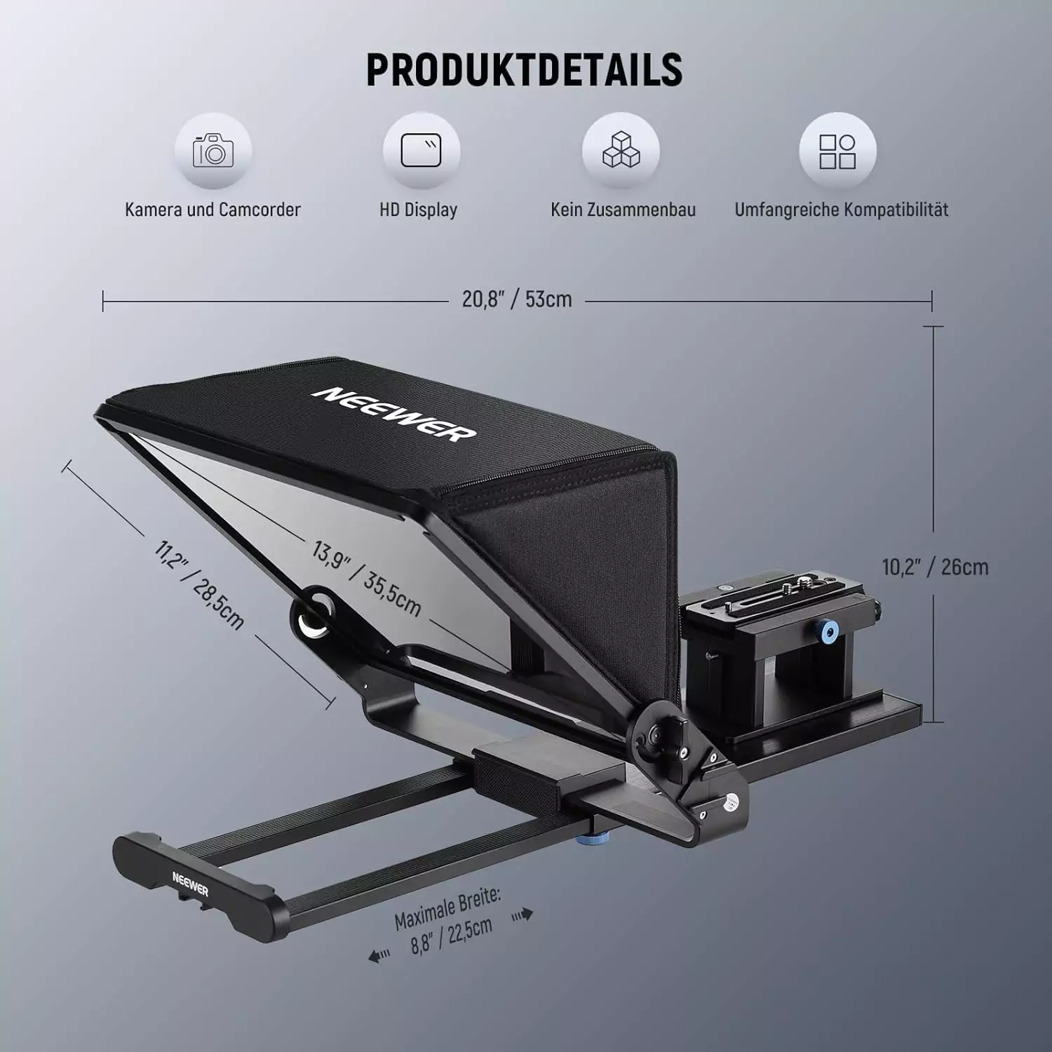NEEWER X14 III ALUMINUM ALLOY TELEPROMPTER WITH 501PL QUICK SHOE PLATE