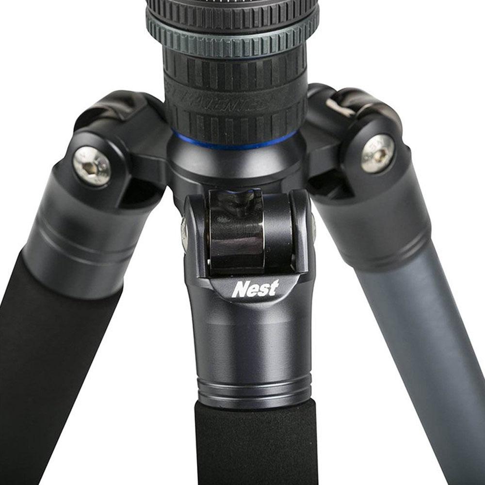 این سه پایه از یک مفصل به همراه قلاب spring hook بهرهمند است. یک وزنه تعادل یا کیف دوربین میتواند از آن آویزان شود. با توجه به مکانیسم ستون افقی که دارد تنها چیزی که شما به آن احتیاج دارید خم و باز کردن است. در حین کار کردن به راحتی میتوانید بدون باز کردن قطعات سه پایه، از حالت افقی به حالت جمعشده برای حمل و نقل تغییر کاربری دهید. هر یک از پایهها به طور جداگانه قابل تنظیم است. زاویۀ پایهها را به راحتی و با سرعت بالا در محیطهای ناهموار تنظیم کنید تا به یک حالت پایدار و مطلوب برای ثبت تصاویر خود دست پیدا کنید. میتوان دوربین را به قطعه میانی سه پایه متصل کرد که این مدل نست NEST را برای عکاسی ماکرو سازگار کرده است. دوربین را به راحتی رو به سوژه تنظیم کنید و با توجه به مشخصات دوربین تا جای ممکن به آن نزدیک شوید تا تصاویر ماکرو تمامعیاری را ثبت کنید.