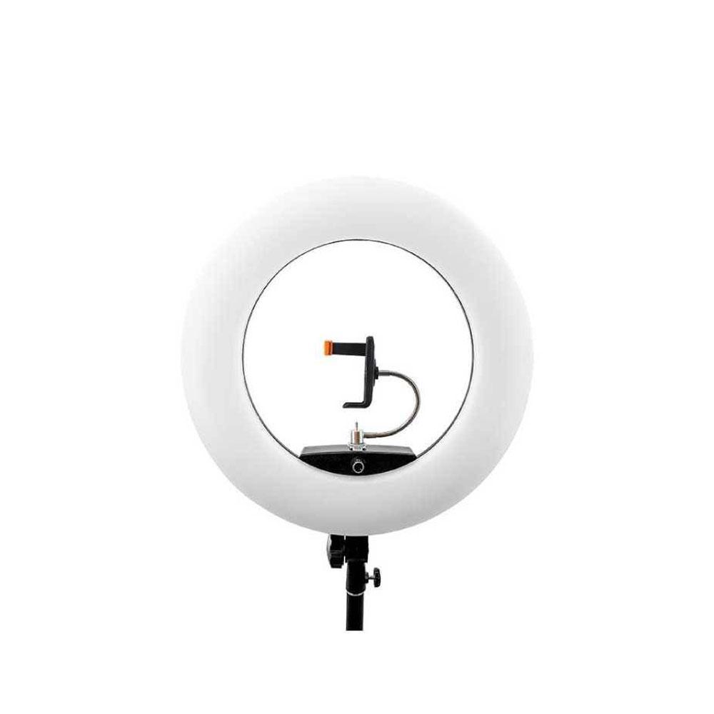 این محصول دارای وزنی سه کیلوگرمی است و با توان 96 وات از 480 عدد لامپ LED برخوردار است. این رینگ لایت دارای نمایشگر تنظیمات است. به همراه این محصول یک کیف، ریموت، آینه آرایشی، هولدر نگهدارنده موبایل و دوربین و یک آداپتور AC دریافت خواهید کرد. بدنه اصلی این محصول به رنگ مشکی طراحی شده و قابلیت نصب و تنظیم بر روی سه پایه را دارد.