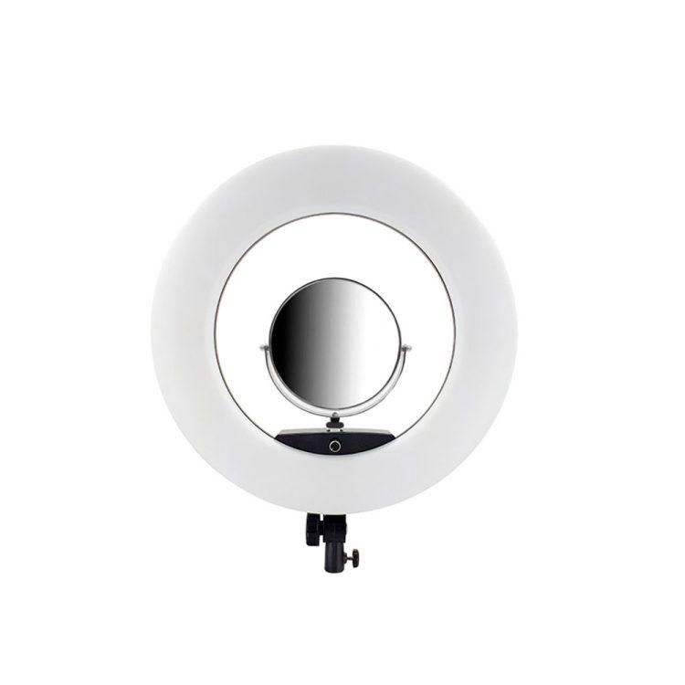 به هرحال میتوان از دو طریق برق مستقیم و باتری این رینگلایت را راهاندازی کرد که تواناییهای آن را در حوزههای مختلف کاری توسعه داده است. رینگ لایت NICE FOTO FN 480II PRO از آینه برخوردار است و به منظور کار در سالنهای آرایشی، کوتاهی مو و چهرهپردازی انتخاب بسیار مناسبی است. همچنین در تهیه ولاگ میتواند به کار آید و جلوههای ویژهای به تولید خود تزریق کنید. حتی اگر در این سالنها تولید محتوا میکنید میتواند به تنهایی یا در کنار دیگر تجهیزات نوری شما یک پکیج قدرتمند برای یک خروجی حرفهای مهیا کند. فاقد پایه است و باید جداگانه اقدام به تهیه کنید.