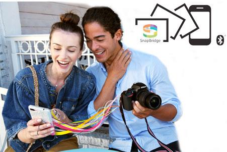 این مدل نیز از سیستم بی سیم بلوتوثی snapbridge ساتفاده میکند. با این سیستم، دوربین شما میتواند به صورت خودکار، تصاویر را با کیفیت 2 مگا پیکسل به تلفن هوشمند شما منتقل کند. ( به دلیل عدم وجود قابلیت وای فای در این دوربین، قابلیت ارسال تصاویر با کیفیت بالا به تلفن همراه هوشمند شما، وجود ندارد و این، یکی از ضعف های این دوربین میباشد)