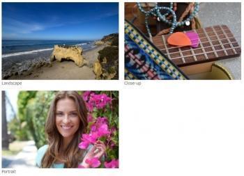 حالتهای صحنه: پرتره، چشم انداز، کودک، ورزش، نزدیک، پرتره شب، چشم انداز شب، در محیط داخلی، ساحل / برف، غروب / سپیده دم، پرتره حیوانات خانگی، Candlelight، شکوفه، رنگ پاییز، غذا.