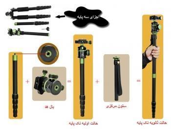 با حذف یکی از پایه ها و نصب هد بر روی آن، سه پایه ی فوتوکس ۸۰۰ تبدیل به یک تک پایه ( مونوپاد Monopod ) می شود؛ همچنین با اضافه کردن ستون مرکزی به آن، تک پایه ای بلند تر خواهید داشت.