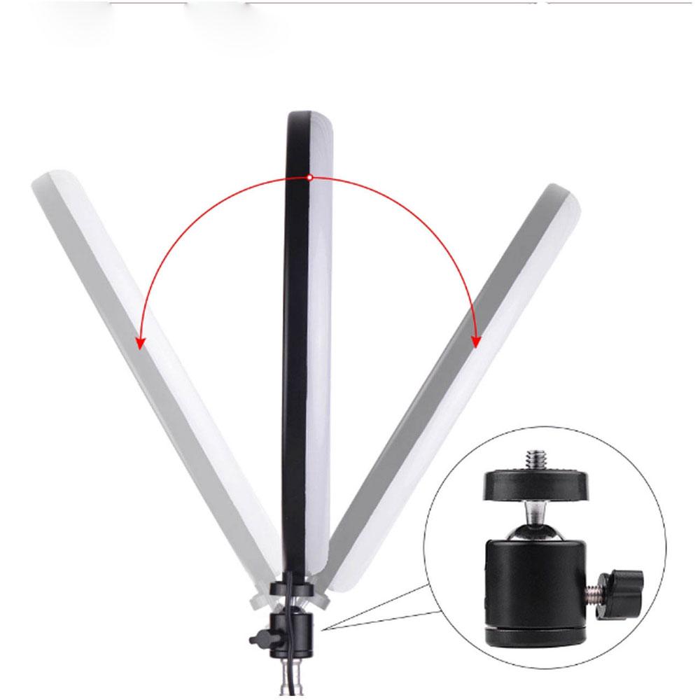 رینگ لایت M26 در ابعاد 26 × 32 × 4 سانتیمتر طراحی شده است. قطر حلقه این رینگ لایت 26 سانتیمتر میباشد و یک نگهدارنده موبایل در وسط حلقه تعبیه شده است. پورت دستگاه از نوع USB است. به این صورت میتوانید آن با ابزار مختلفی که از USB پشتیبانی میکنند (مثل پاور بانک، شارژر USB، لپتاپ، کامپیوتر و …) شارژ نمایید. در نتیجه صاحب یک رینگ لایت پرتابل میشوید و نگران منبع تغذیه و موقعیت مکانی نخواهید بود. شایان ذکر است که وزن کل رینگ لایت M26 فقط 315 گرم است.
