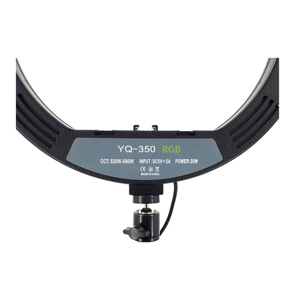 رینگ لایت YQ-350 هفت رنگ RGB ارائه میدهد؛ که میتوان به کمک آنها خلاقیت در عکاسی را به اوج رساند. نورها در سه حالت تک رنگ، چشمکزن و چرخشی هفترنگ قابل ارائه هستند. همچنین تون رنگی بین سه حالت نور سفید، نور گرم و نور ترکیبی قابلیت تغییر دارد. علاوه بر آن، میتوانید قدرت خروجی را از 0% تا 100% تغییر دهید و به درجه نور دلخواه برسید.