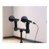 در پایه افقی دو شیار با طول حدودا 14.7 سانتیمتری وجود دارد که پایههای عمودی نگهدارنده میکروفونها درون آن قابلیت حرکت دارند تا در جای درست خود قرار بگیرند. برای نصب میکروفونها روی این دو جزء عمودی، هر میکروفون را در روی گیره سوار شده روی پایه عمودی قرار داده و محکم به سمت جلو فشار دهید تا میکروفون با یک صدای کلیک، در جای مناسب خود قرار بگیرد.