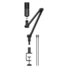 این میکروفون دارای طراحی مدرن و جذاب است که نهتنها از نظر عملکرد، بلکه از نظر ظاهری نیز بسیار شیک به نظر میرسد. پایهای مقاوم و قابل تنظیم برای قرار دادن میکروفون بر روی میز، امکان تنظیم ارتفاع و زاویه ضبط را به راحتی فراهم میآورد.