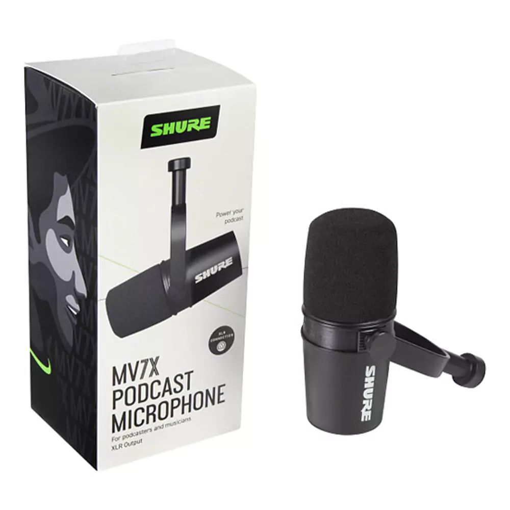 Shure MV7X یک میکروفون داینامیک کاردیود است که به دلیل الگوی دریافت خاص خود، میتواند صدای محیط را به حداقل برساند و تمرکز را بر روی صدای گوینده حفظ کند. به لطف پاپ فیلتر داخلی، صداهای اضافی مانند پلاسیوها (بادهای حاصل از تلفظ حروف پ، ب و ت) کاهش مییابند. این میکروفون برای کارکرد نیازی به فانتوم پاور ندارد و از طریق درگاه XLR سه پین به رابط صوتی یا میکسر متصل میشود.