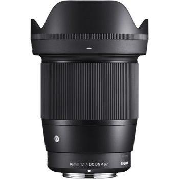 لنز سیگما با فاصله کانونی 16 میلی متر با مانت E سونی، سازگار با فرمت APS-C با فاصله کانونی 24 (معادل دوربین های 35 میلی متر)،با دامنه دیافراگم 1.4 تا 16 ، با حداقل فاصله فوکوس 25 سانتی متر، دارای 3 المان FLD دو المان SLD و دو المان آسپریکال