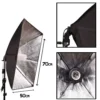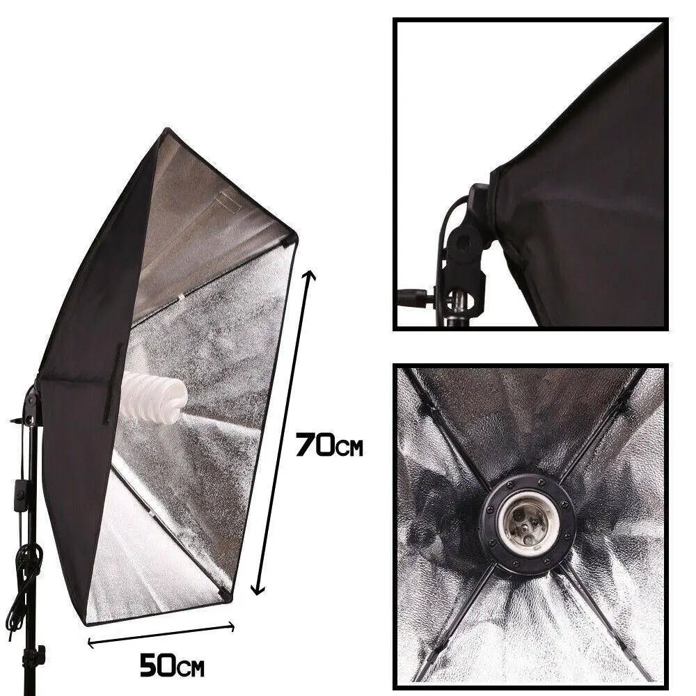 سافتباکس ۵۰×۷۰ سانتیمتر با سرپیچ E27، قابلیت نصب انواع لامپهای رشتهای، LED و فلورسنت را دارد. پوشش نقرهای داخلی آن بازتاب نور را افزایش میدهد و دیفیوزر، نور را نرم و یکدست میکند. این محصول بدون لامپ و سهپایه عرضه شده و بهراحتی قابل حمل و نصب است.
