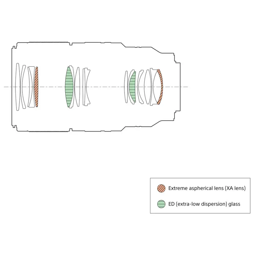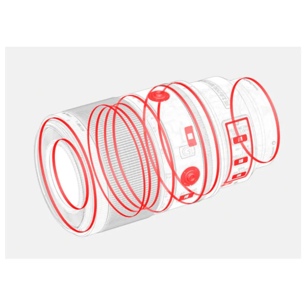 حداقل فاصله فوکوس 26 سانتیمتر و بزرگنمایی 1.4 برابر (با تلهکانورتر تا 2.8 برابر) امکان عکاسی نزدیک به سوژه را فراهم میکند. این لنز سونی Sony مجهز به حلقه دیافراگم با سوئیچ De-Click، پوشش نانو AR II و فلورین، حلقه فوکوس قابل حرکت و دکمههای کنترل فوکوس برای تجربه کاربری راحتتر است. قطر فیلتر 67 میلیمتر و وزن آن 646 گرم میباشد.
