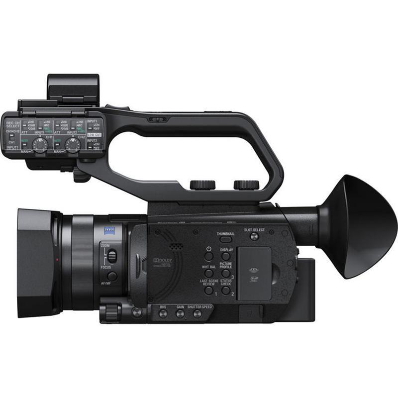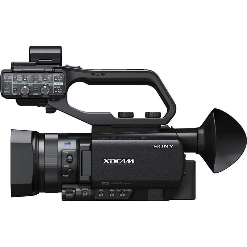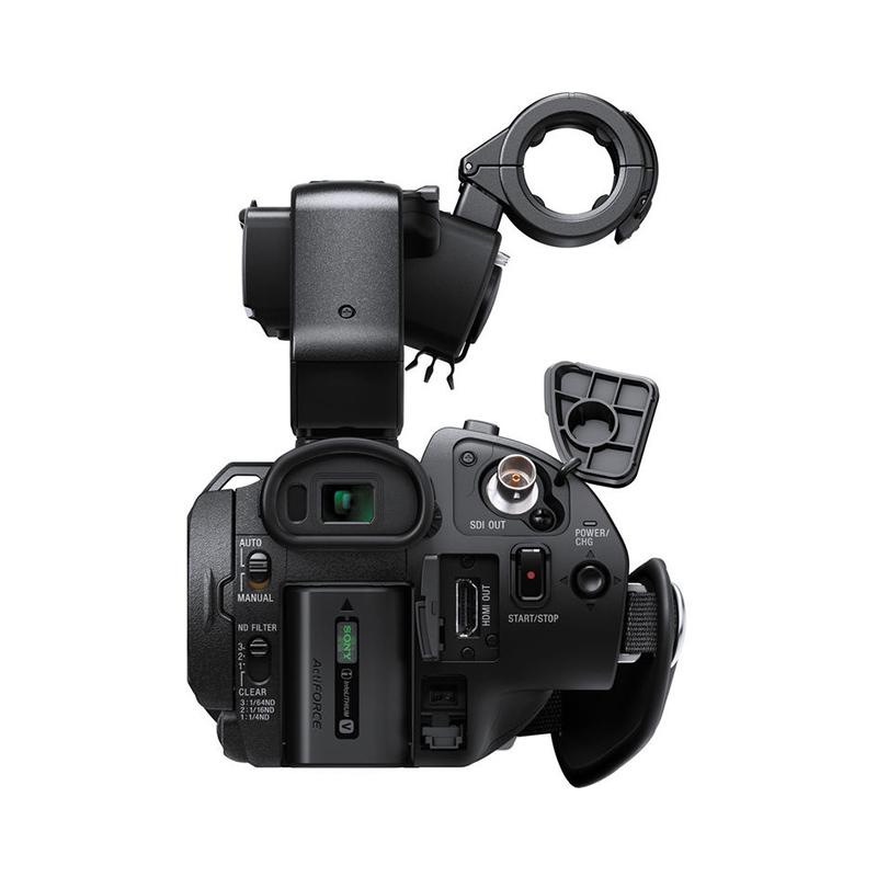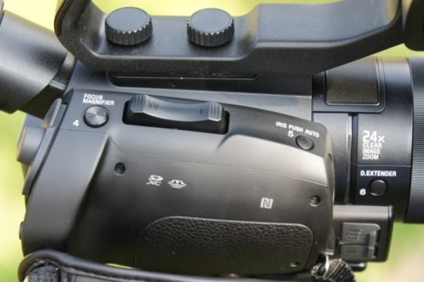 X70 تقریباً بدنهای متفاوت نسبت به مدل AX100 سونی دارد. در سمت راست آن دستگیرهای ضخیم قرارگرفته است که کمک میکند حتی در زمانی طولانی به سادگی آن را در دست داشته باشید. در همین سمت، دو خروجی HDSDI و HDMI قرار گرفته است. در قسمت بالایی دستگیره دکمهی بزرگی برای فوکوس کردن توسط «بزرگنمایی تصویر» وجود دارد که هنگام فیلمبرداری درست زیر انگشت اشارهی شما قرار میگیرد. کمی جلوتر یک دکمهی بزرگ قرار گرفته که زوم کردن را برای شما سادهتر میکند.