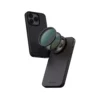 این قاب با سیستم آهنربایی، گوشی را محکم در خود نگه میدارد. همچنین، دارای صفحه پشتی 17 میلیمتری برای نصب لنزهای ماکرو و تله است و با آداپتور فیلتر 67 میلیمتری، امکان استفاده از فیلترهای CPL، ND، UV و دیگر فیلترهای موبایلی را فراهم میکند.