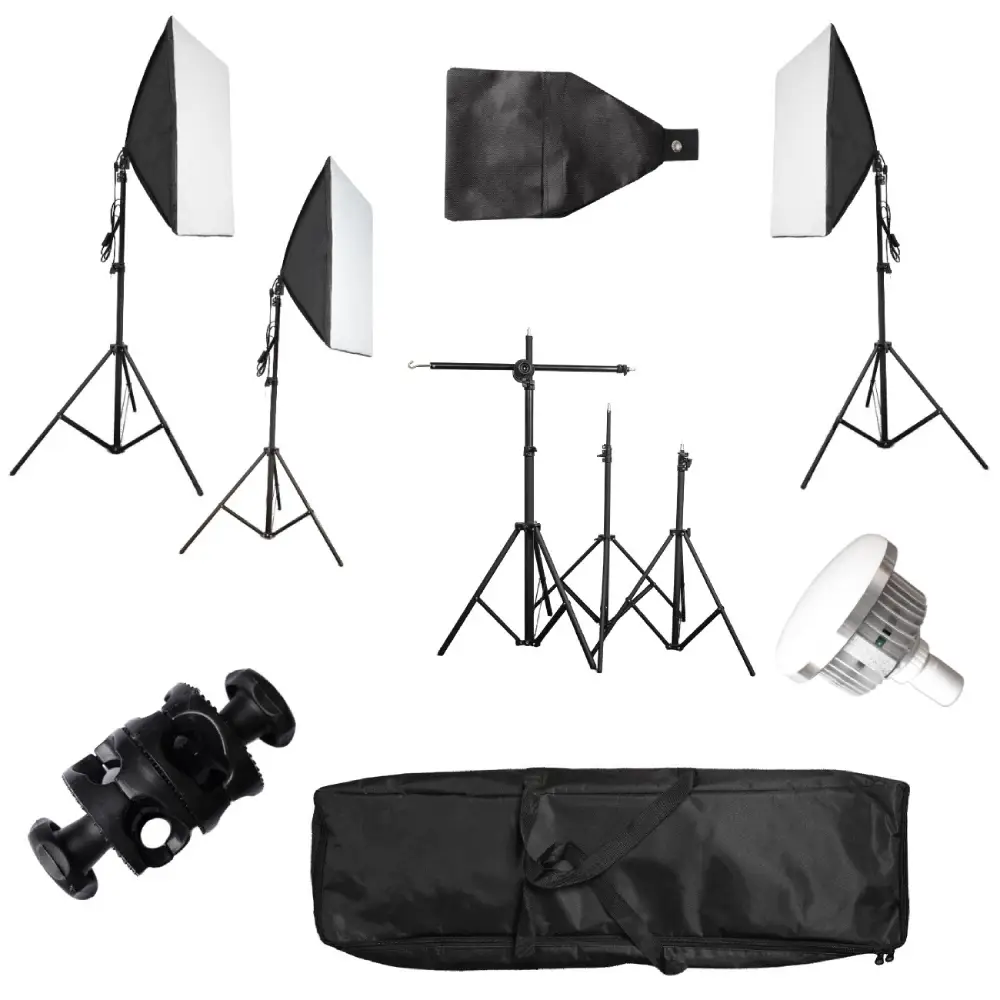 كيت سه شاخه ويديو لامپ Triple Studio Softbox Photography Lighting Kit
