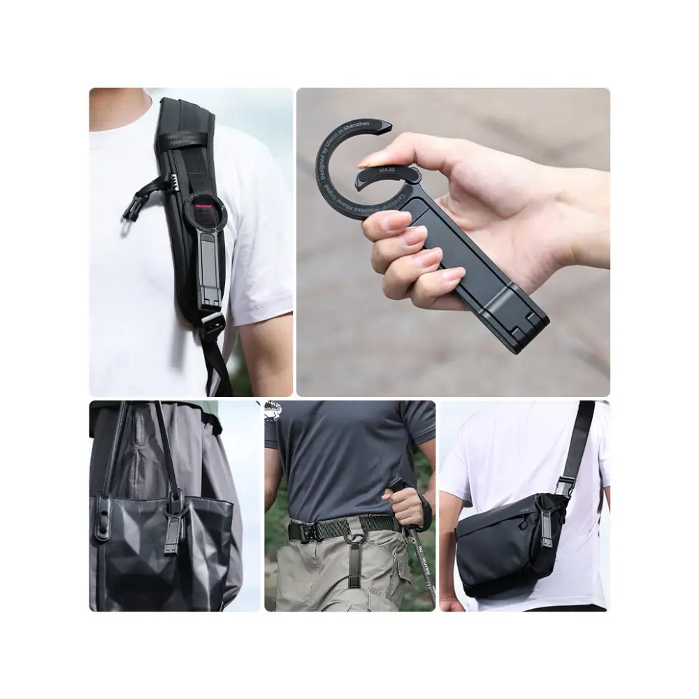 - دارای گیره کارابین جهت اتصال آسان به بند کیف، حلقه کمربند و…
