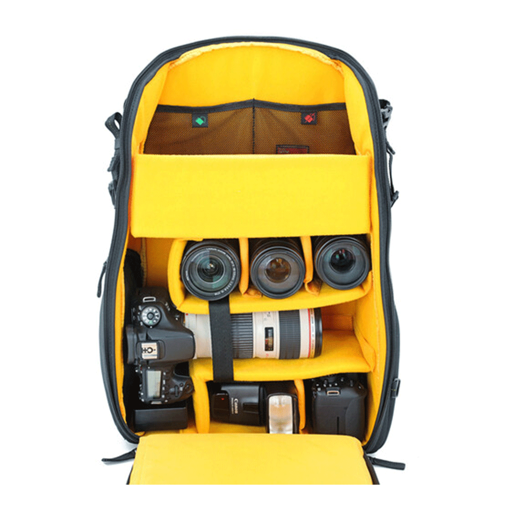 - ظرفیت حمل دو دوربین DSLR به همراه لنز متصل و لنز اضافی دیگر و یک فلاش
