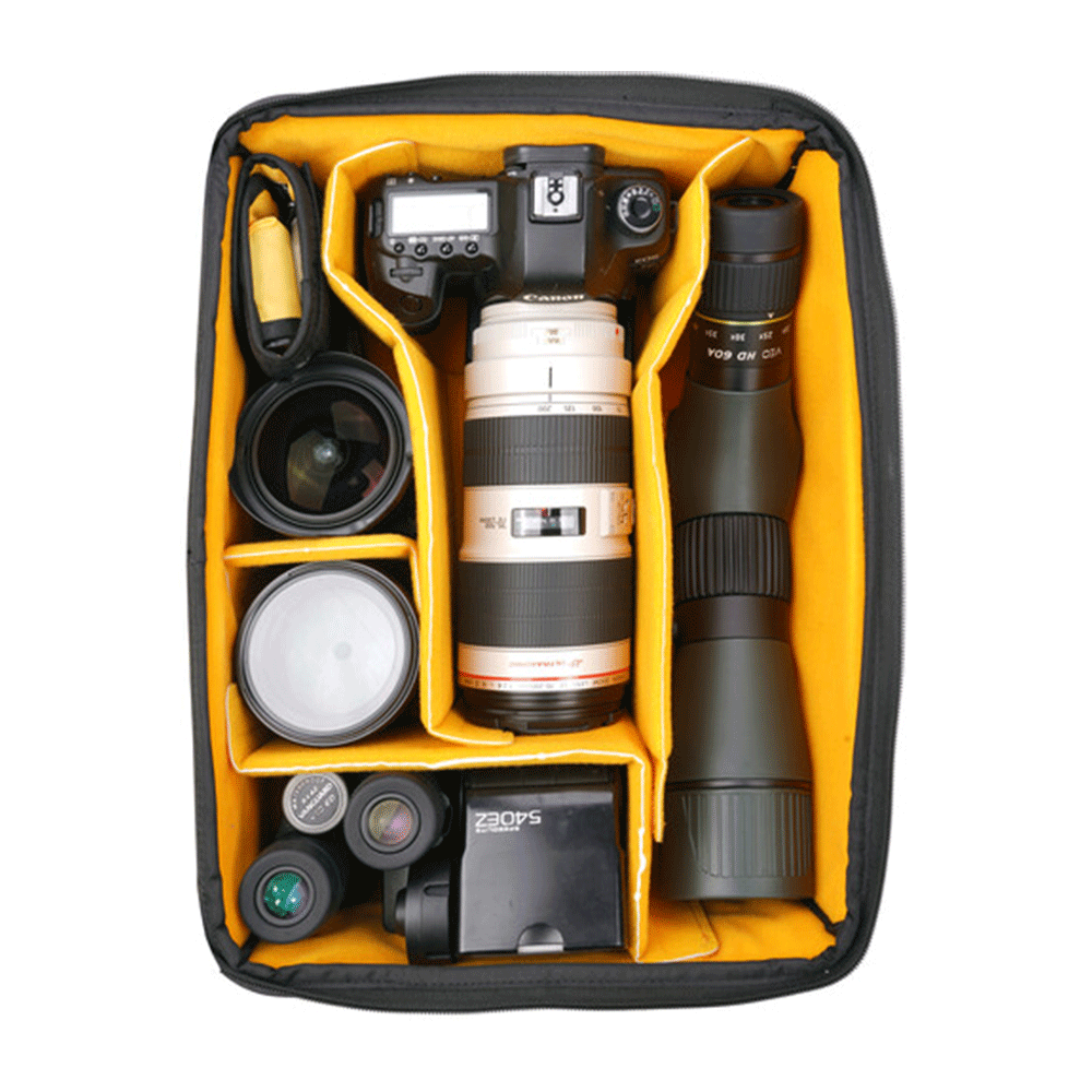- فضای کافی برای حمل یک دوربین DSLR حرفهای، 4لنز و لوازم جانبی