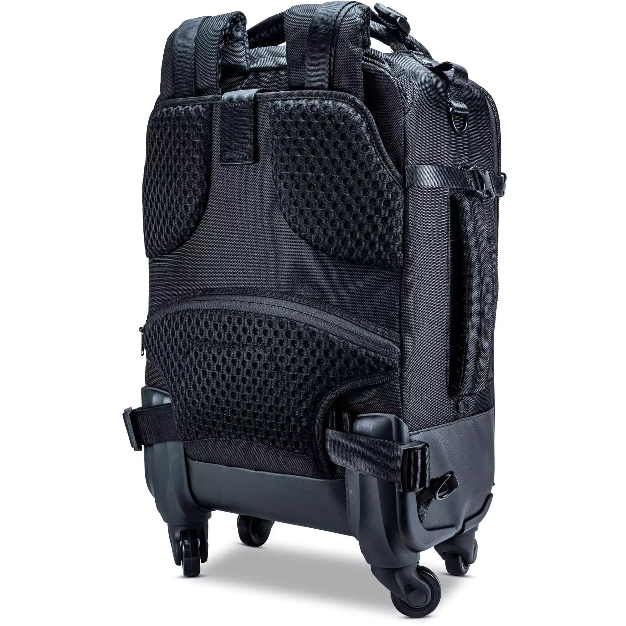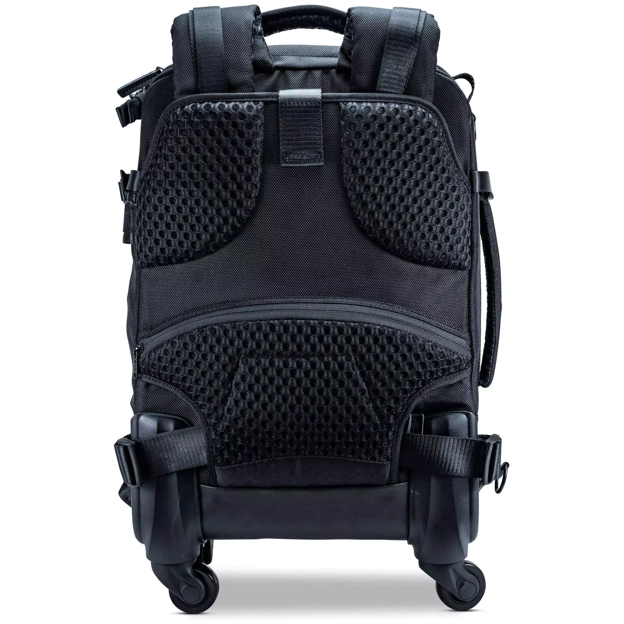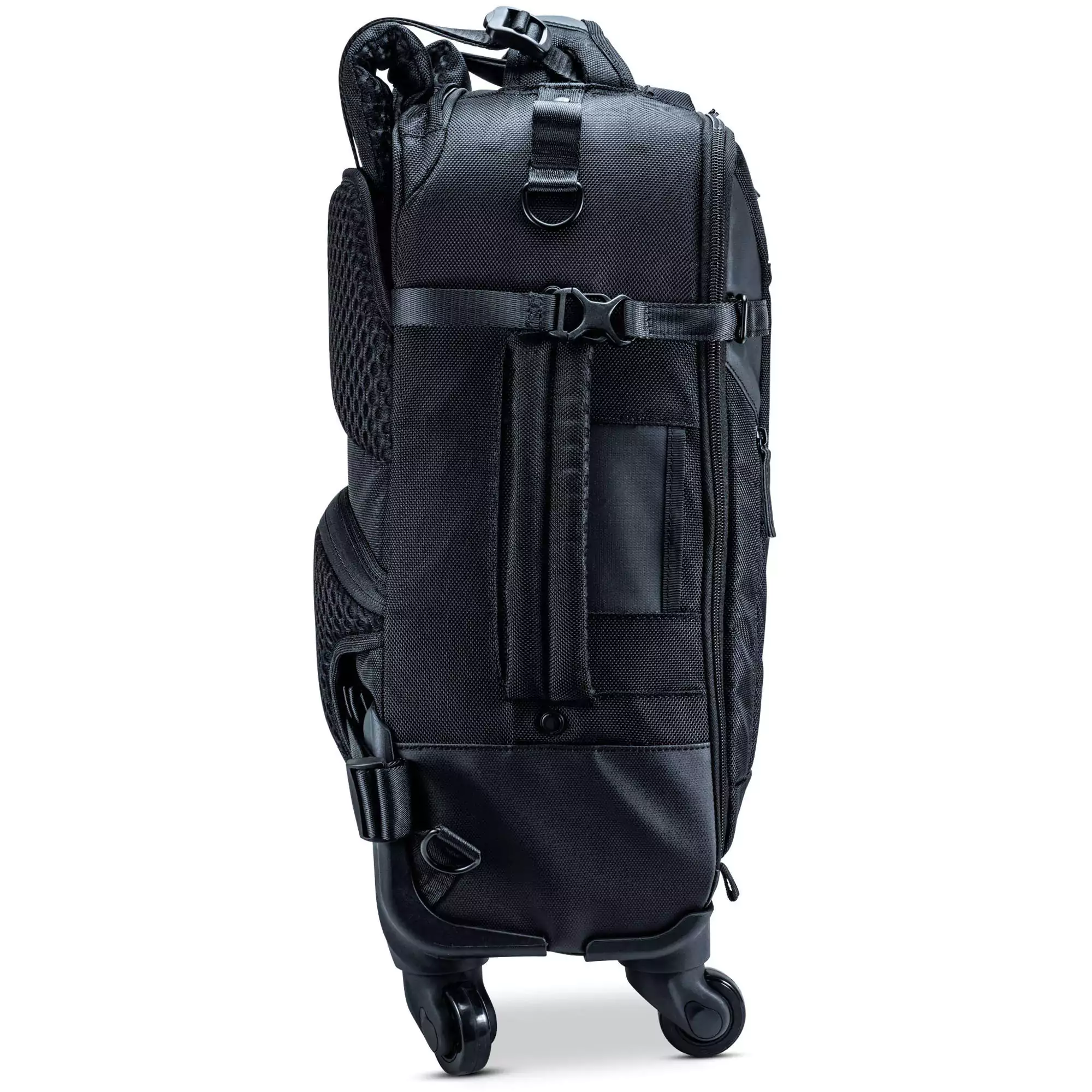 Vanguard VEO SELECT 55T Trolley Backpack Black مشخصات محصول گالری ویدئو مشخصات فنی نظرات کاربرانمشخصات محصول ظرفیت حمل 1 تا 2 دوربین DSLR یا بدون آینه (یکی با لنز 300mm f/2.8 متصل) فضای داخلی برای 4 تا 5 لنز، یک فلاش و لوازم جانبی جایگاه مخصوص لپتاپ 13 اینچی و تبلت 9.7 اینچی دارای 4 چرخ روان با قابلیت چرخش 360 درجه پارتیشن داخلی قابل جابجایی بندهای قابل تنظیم برای اتصال سهپایه کاور باران همراه دسته بالا، دسته کناری، بندهای کولهپشتی و بند سینه جنس کف مقاوم در برابر آب و خش جیب مخفی در قسمت پشتی برای مدارک و کیف پول سیستم حمل ترکیبی (کولهپشتی + چرخدار) جیب زیپی دوطرفه سرتاسری در قسمت جلو نگهدارنده سهپایه قابل باز شدن در طرفین مجهز به سیستم اختصاصی VEO TRIPOD LINK برای اتصال سهپایه ویژگی های عمومی عمومی کیف جدید نوع کیف کوله پشتی, کیف چرخ دار